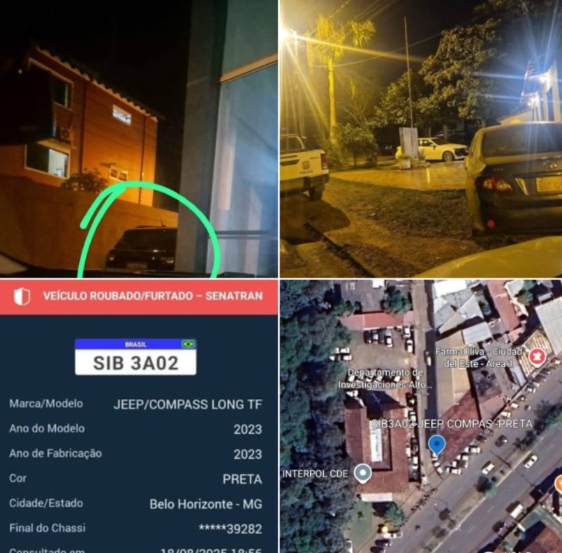 Según el reporte, alrededor de las 18:30 horas, el sistema de rastreo satelital de la empresa brasileña «Localiza Renta Car» marcó la ubicación de un Jeep Compass, color negro, que figuraba como robado.