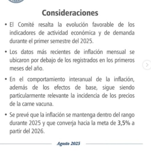 El descenso se terminó materializando en un 2% desde el inicio de esta politica impulsada por el Banco Central respecto a la tasa de interés. La proyección de crecimiento de la inflación para el país llega al 4% actualmente y productos como la carne vacuna son fundamentales dentro de la incidencia de esta, al punto de que si se quitara dicho producto, la misma podría reducirse hasta en un 1%.