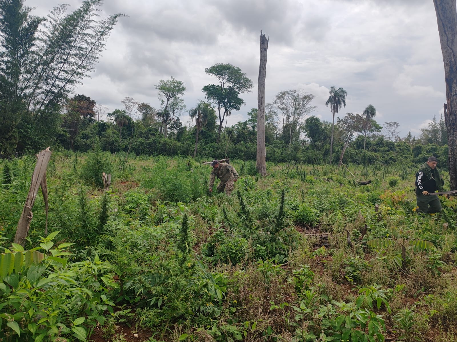 Las acciones fueron encabezadas por el fiscal Abg. Jorge Encina Alder, quien participó de la incursión en el terreno. En total, se procedió a la erradicación de 5 hectáreas de plantaciones de marihuana en diferentes etapas de crecimiento.