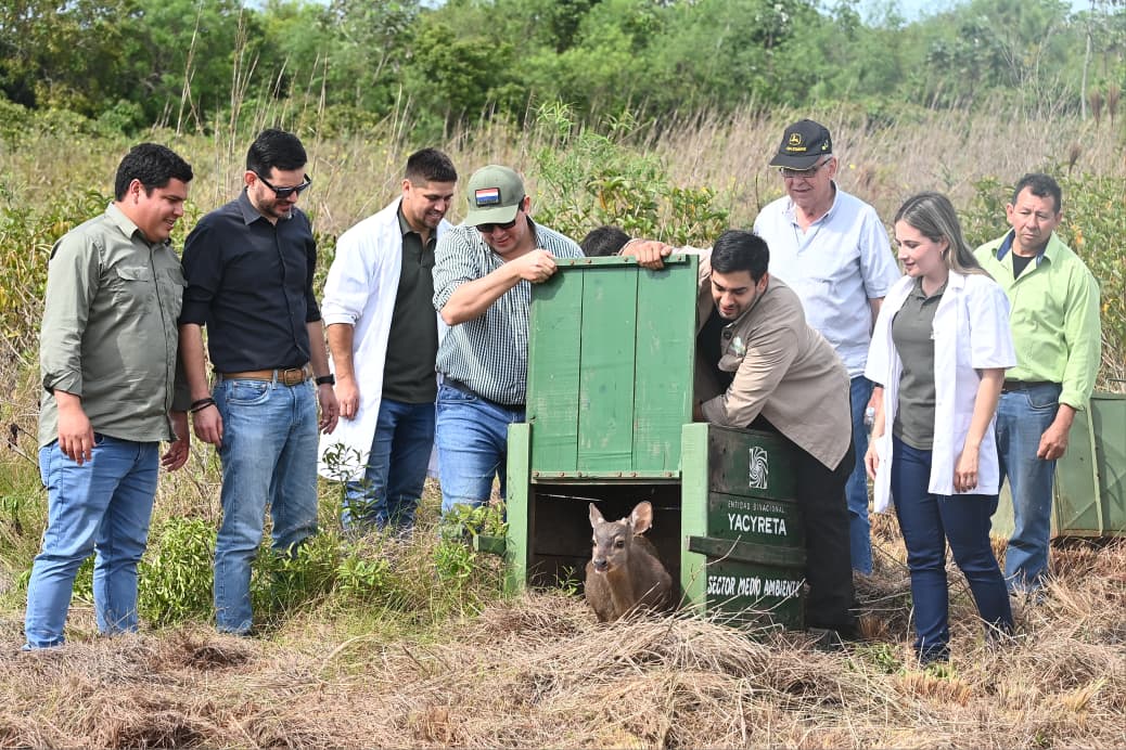 La suelta de los animales bajo la coordinación del abogado José Alvarenga, jefe del Sector Medio Ambiente, y los técnicos de las áreas de Reserva y Biodiversidad y el Refugio Faunístico Atinguy, se realizó en el Centro Administrativo Isla, de Ayolas, y fue seguida por los consejeros Dr. Michel Flores, Dr. Miguel Olmedo y Ing. Germán Gneiting,  desde la Torre de Vigilancia denominado ”Vicente Ramírez”, en honor a quien fuera jefe de Reservas y Biodiversidad.