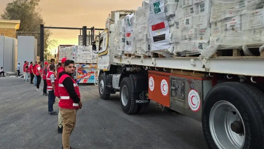 Cientos de camiones con ayuda humanitaria comenzaron a entrar este domingo en la Franja de Gaza desde Egipto de acuerdo al plan de alto al fuego entre Israel y Hamás, alcanzado el jueves pasado. Largas colas de camiones con ayuda se encuentran también en la zona fronteriza de Rafah, a la espera de entrar en la Franja a través de los cruces de Kerem Shalom y al Awja, controlados por Israel, informó el canal de televisión egipcio Al Qahera News.