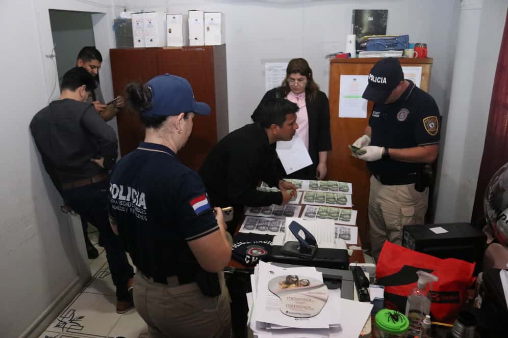 Incautaron Gs. 7 millones, dos celulares y una CPU. Las evidencias quedan a cargo del Ministerio Público. Se labró acta de procedimiento y tomas fotográficas.