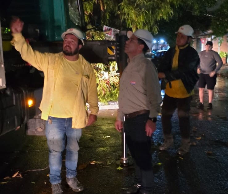 «Nos dimos cuenta que el evento meteorológico fue muy grande, que dejó daños severos al sistema», agregó el funcionario de la ANDE tras la recorrida de cuadrillas. Destacó que el objetivo es restablecer el 100% el servicio este lunes.