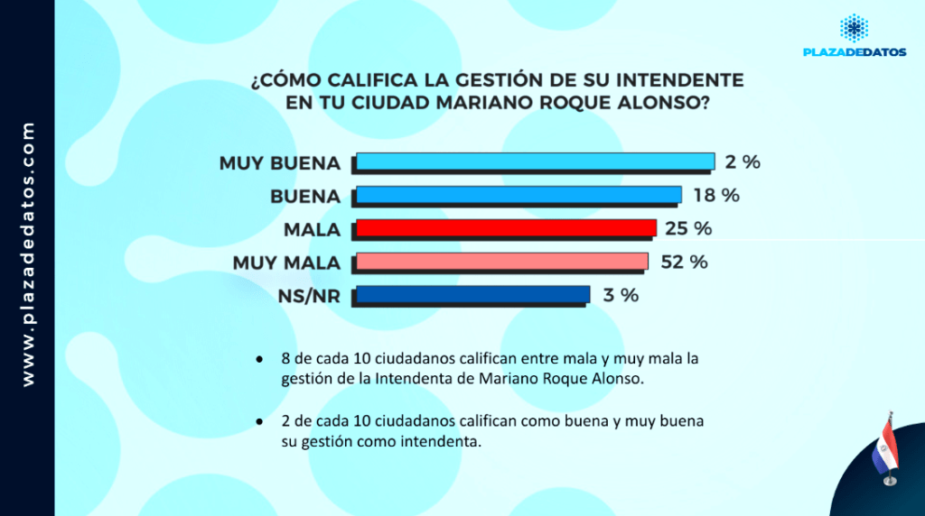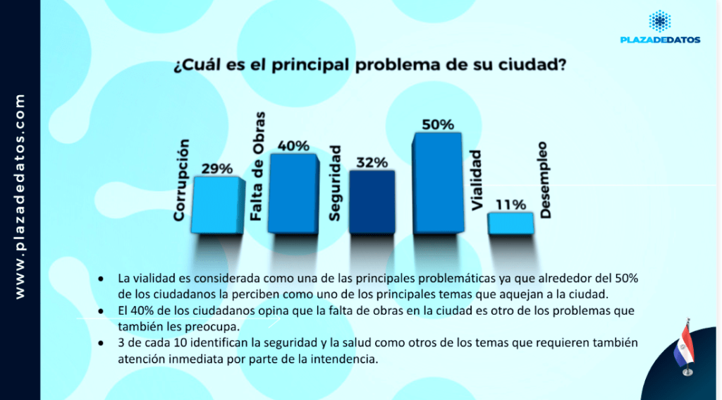 Daniel Ureta, CEO de Plaza de Datos, y Alfredo Dávalos, Asesor Internacional y Analista de Plaza de Datos, habló con Radio 1000 sobre una encuesta realizada en Mariano Roque Alonso, en donde se arrojan resultados que revelan que la mayoría de los ciudadanos sentirían que sus necesidades no están siendo atendidas, señalándose problemas como la mala vialidad, la falta de obras y la inseguridad como los que más afectan la vida diaria.