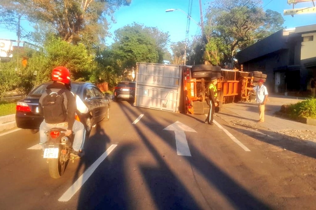 Un camión de gran porte volcó en la avenida Mariscal López, a pocas cuadras de Madame Lynch, lo que generó una lentitud vehicular en la zona. Ocurrió poco antes de las 07:00 de este miércoles, sobre la avenida Mariscal López y la calle Luis Alberto Riart, a cuadras de la intersección con Madame Lynch.