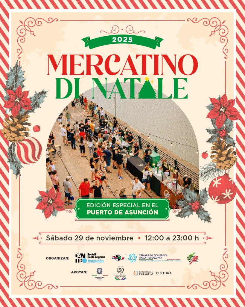 Por primera vez, el tradicional Mercatino di Natale, mercadito navideño italiano, se realizará en el Puerto de Asunción a partir del mediodía de este sábado 29 de noviembre. Contará con con más de 40 stands de gastronomía, artesanía, música y cultura italiana. La entrada es libre y gratuita.