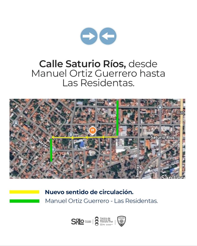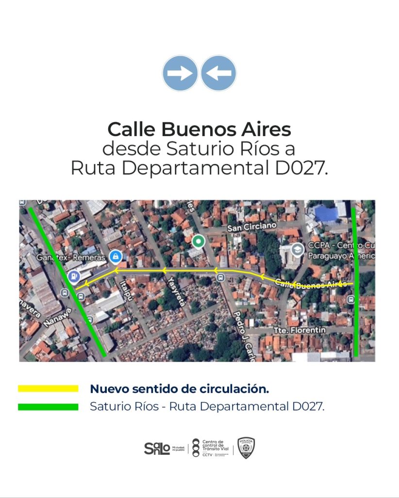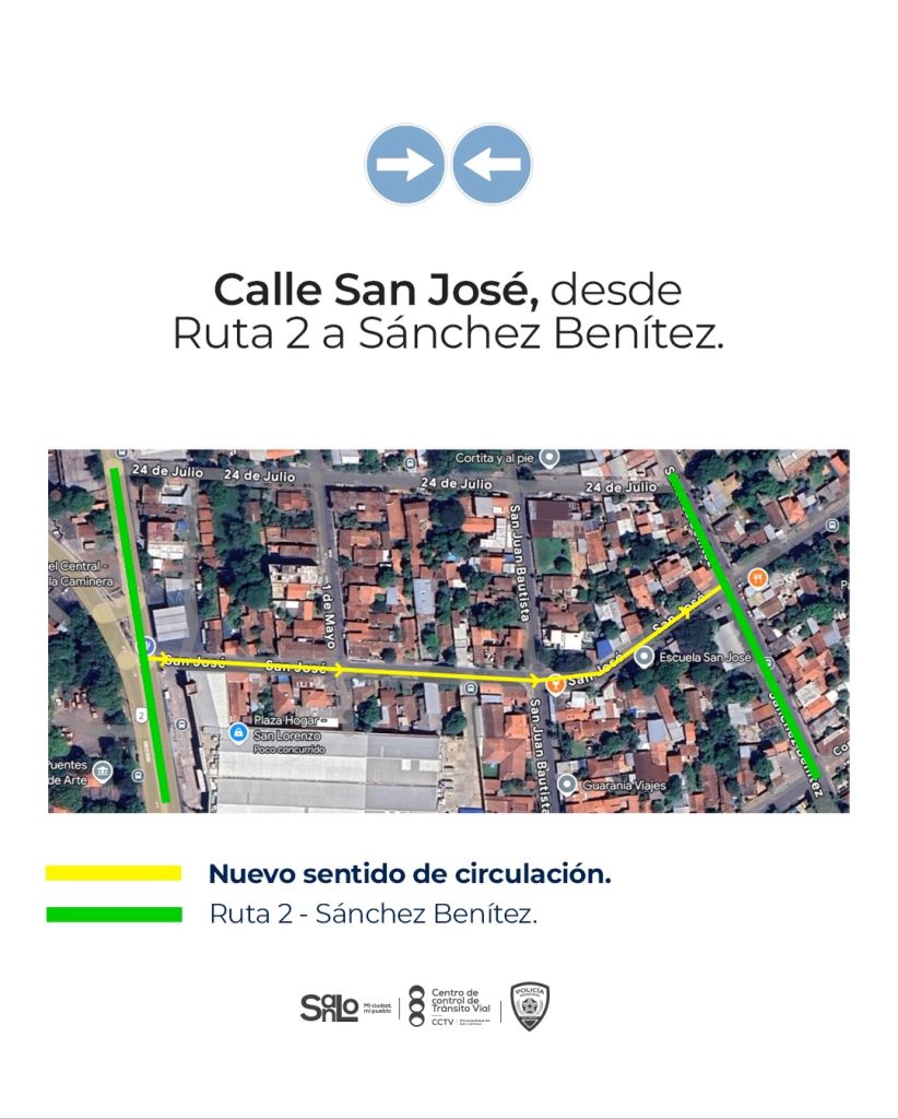 Desde la Municipalidad de San Lorenzo informan a la ciudadanía que, se están realizando trabajos de señalización vial con el objetivo de modificar el sentido de circulación en las siguientes calles de la ciudad: Saturio Ríos, San José, Nanawa, Buenos Aires, Sargento Silva y Mayor Vera.
