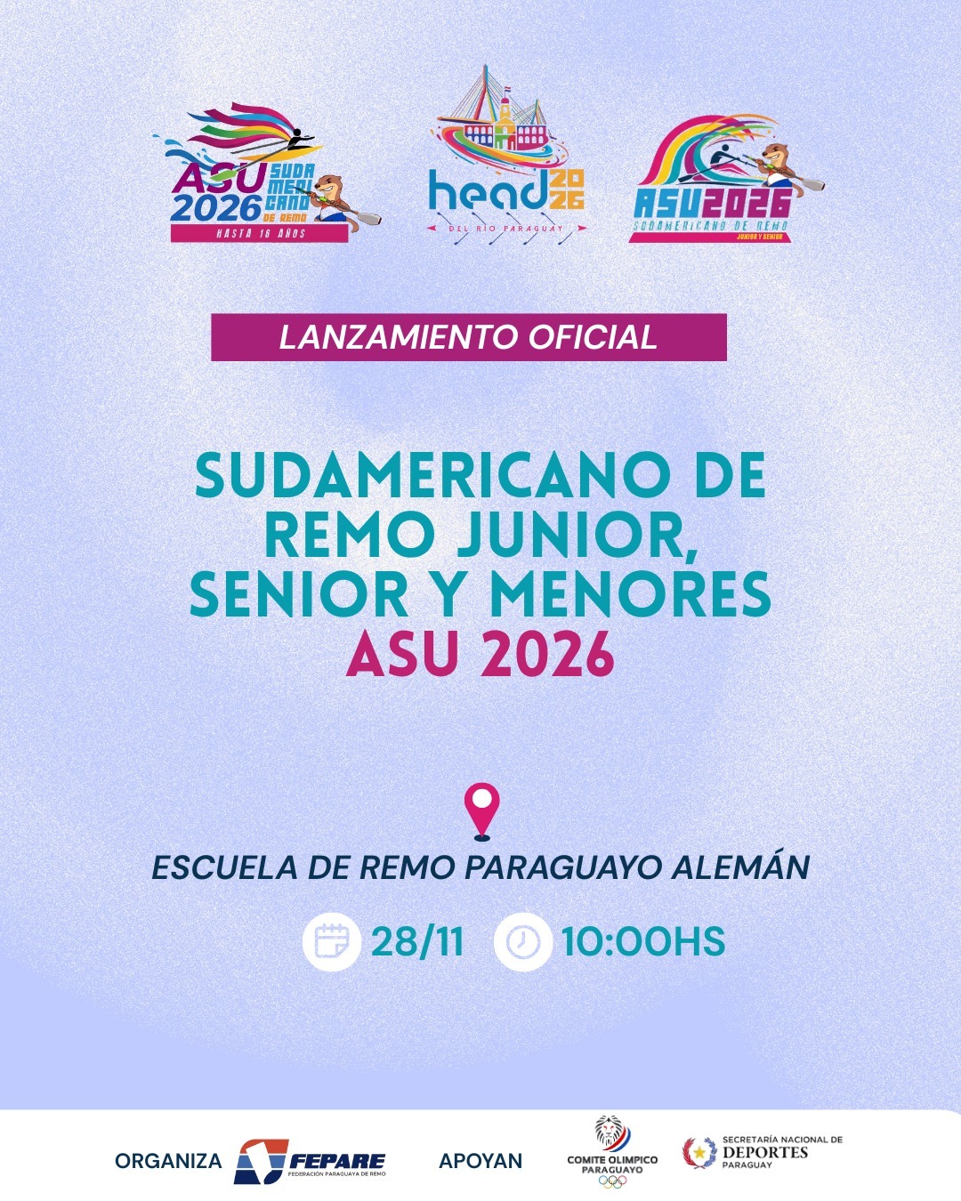 Esta mañana en la Escuela de Remo Paraguayo Alemán, se realizó el lanzamiento oficial del Sudamericano de Remo Junior, Senior y Menores ASU 2026, el cual se va estar llevando a cabo en la Bahía de Asunción y en el Río Paraguay. Los sudamericanos Junior y Senior van a disputarse en la Bahía de Asunción del 14 al 18 de abril y el de Menores también en el mismo sitio a realizarse en Julio. Al respecto habló con Radio 1000 el Sr. Pablo Seitz, Presidente de la Federación Paraguaya de Remo.