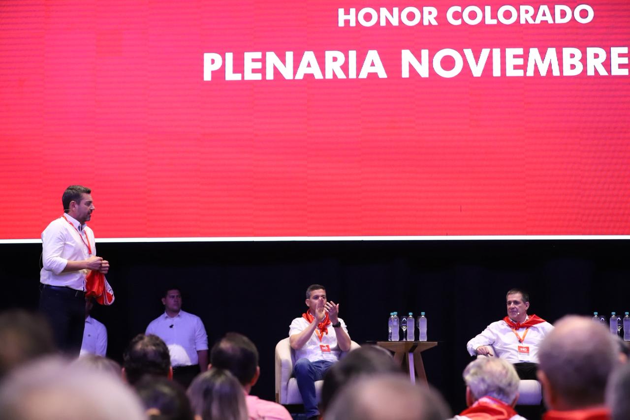 El presidente de la República Santiago Peña, dio un eufórico discurso en la plenaria de Honor Colorado y tiró elogios hacia el titular del Partido Colorado, Horacio Cartes. Peña pidió perdón a los dirigentes que ya no pudieron participar de la plenaria debido al limitado espacio. En forma de broma, indicó que el próximo encuentro ya debería realizarse en el estadio de Libertad o en el Defensores del Chaco.