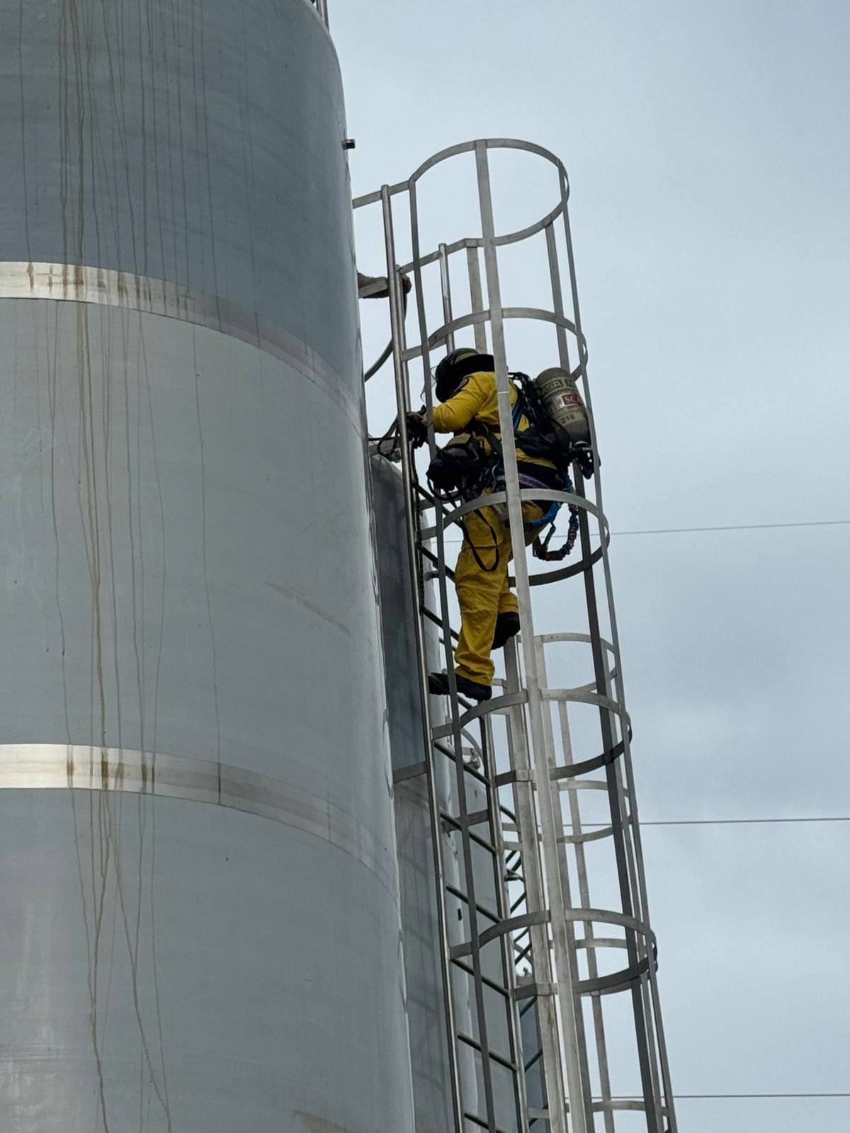 Según el encargado de planta, Gustavo Urizar de 70 años, la víctima perdió el equilibrio y cayó al interior del tanque, siendo rescatada con vida por personal de la empresa y los bomberos.