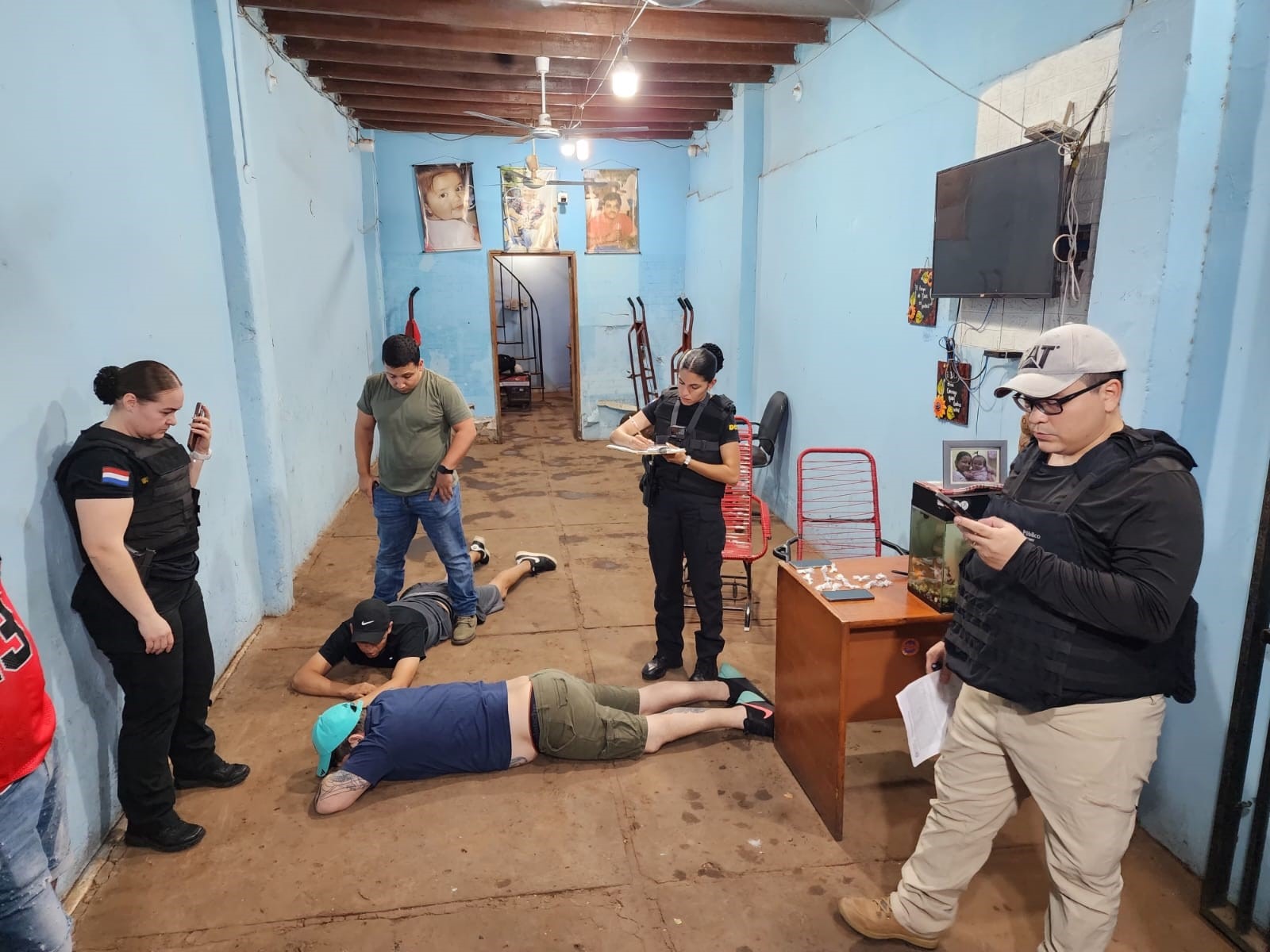 Durante el procedimiento, fueron detenidas cuatro personas, Enrique Javier Fleitas Colmán de 34 años, Rubén Celestino Ruiz Díaz Lezcano de 31 años, Sergio Daniel Ayala Duarte de 34 años y Marcelo Nicolás Duarte de 29 años, este último con antecedentes por trasgresión a la Ley 1340/88.
