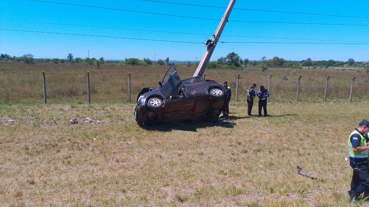 De acuerdo con el informe de la Comisaría 3ª, el siniestro ocurrió alrededor de las 11:20, cuando el vehículo Toyota Sienta, conducido por Néstor Rubén González García (46), presuntamente realizó una maniobra de adelantamiento. Al intentar volver a su carril, el conductor perdió el control, cayó a un barranco e impactó de forma violenta contra una columna de cemento de la ANDE, donde el automóvil quedó incrustado.