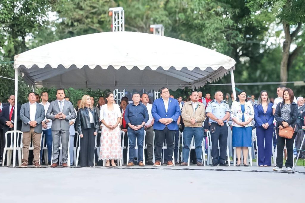 El acto fue encabezado por el presidente Santiago Peña, acompañado por la primera dama Leticia Ocampos, el vicepresidente Pedro Alliana, autoridades nacionales, departamentales y locales.