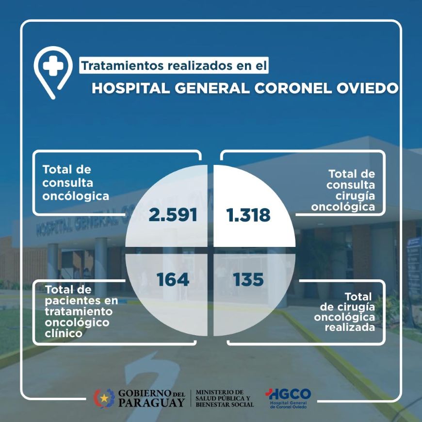 Durante el año 2025, el Hospital General de Coronel Oviedo brindó 2.591 consultas oncológicas clínicas a pacientes del departamento de Caaguazú, permitiendo que reciban atención especializada sin tener que trasladarse a otros centros de referencia del país.