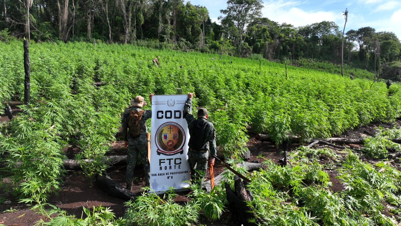 Este esfuerzo coordinado entre las instituciones permitió alcanzar logros contundentes: se destruyeron 50 hectáreas de plantaciones de marihuana y se eliminaron 2 campamentos precarios utilizados por las estructuras criminales para la producción ilícita.