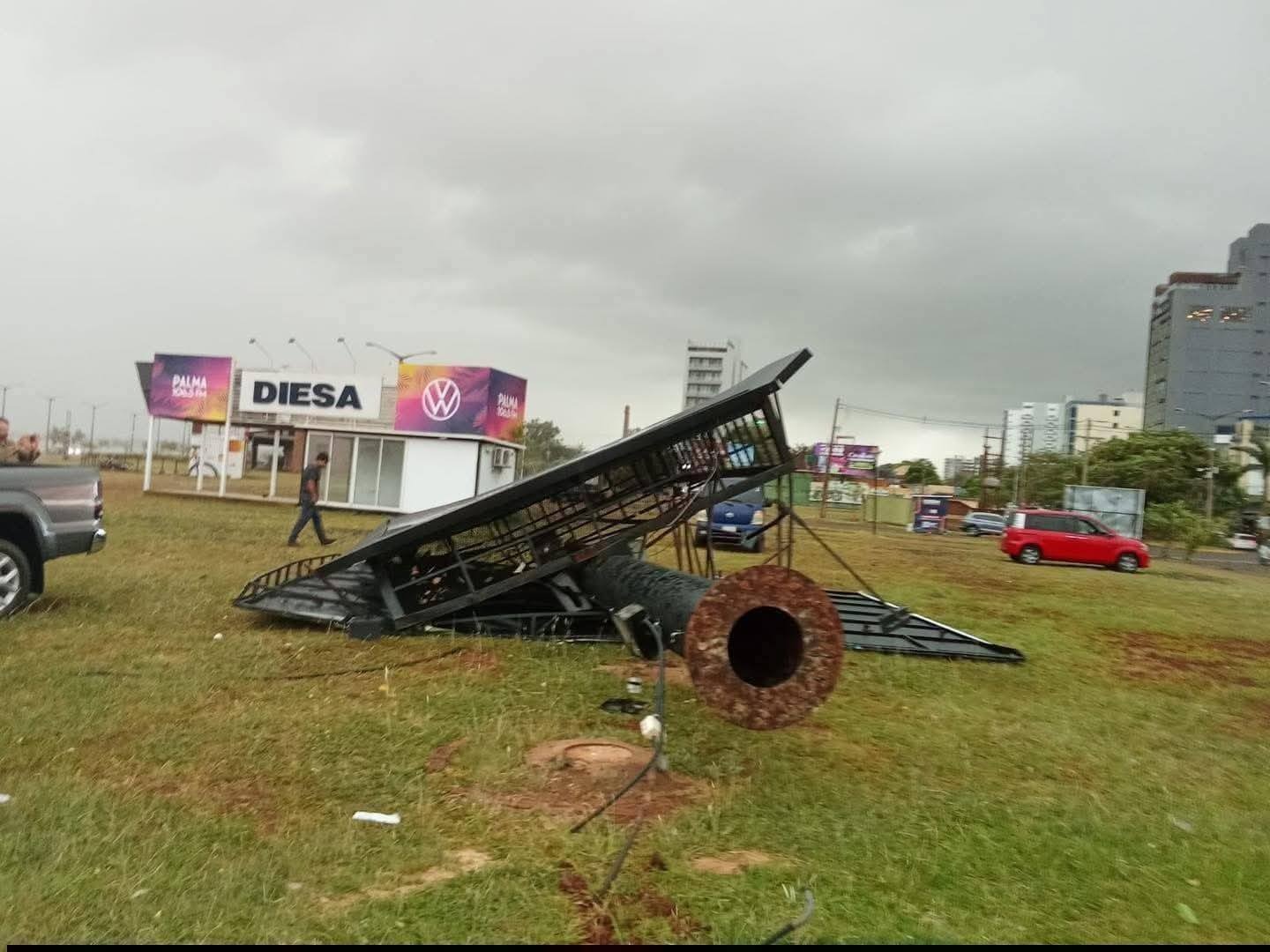 Según el informe de la Dirección de Policía de Prevención y Seguridad, en la jurisdicción de la Comisaría 3ª de Encarnación, las intensas ráfagas de viento derribaron un cartel en inmediaciones de la playa San José y provocaron daños en carpas instaladas en el Centro Cívico Municipal.