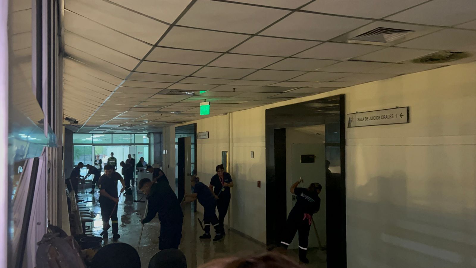 El agua descendió hacia el sector donde funciona una parte de la Oficina de Auditoría de Gestión Jurisdiccional. La sala de juicios orales ubicada en ese mismo nivel no presenta daños estructurales.