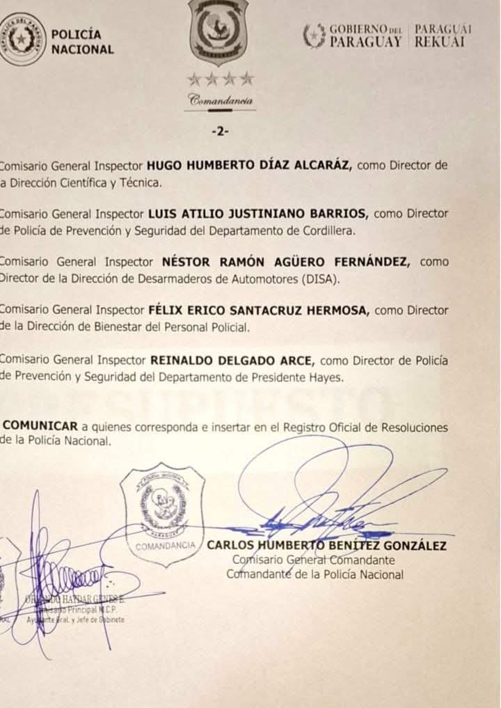 Este jueves se informó acerca de una serie de cambios en la cúpula policial del Alto Paraná, siendo nombrado el Comisario General José Vega como nuevo director de Policía en reemplazo del Crio. Carlos Acosta, siendo nombrado en las próximas horas de manera oficial.