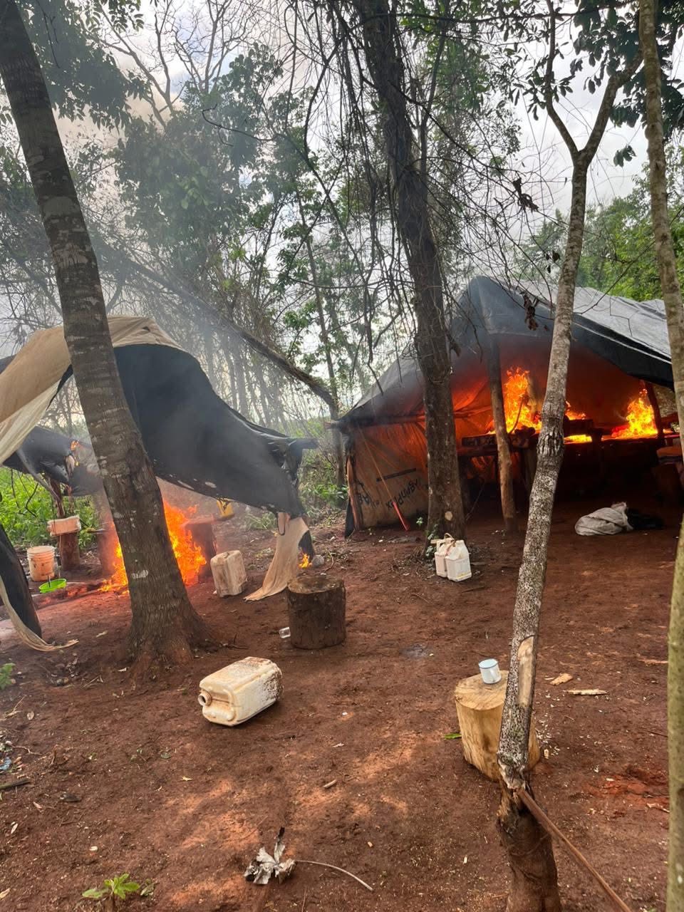 En el lugar también fue desmantelado un campamento precario, junto con varios enseres utilizados presumiblemente para el mantenimiento de la plantación.