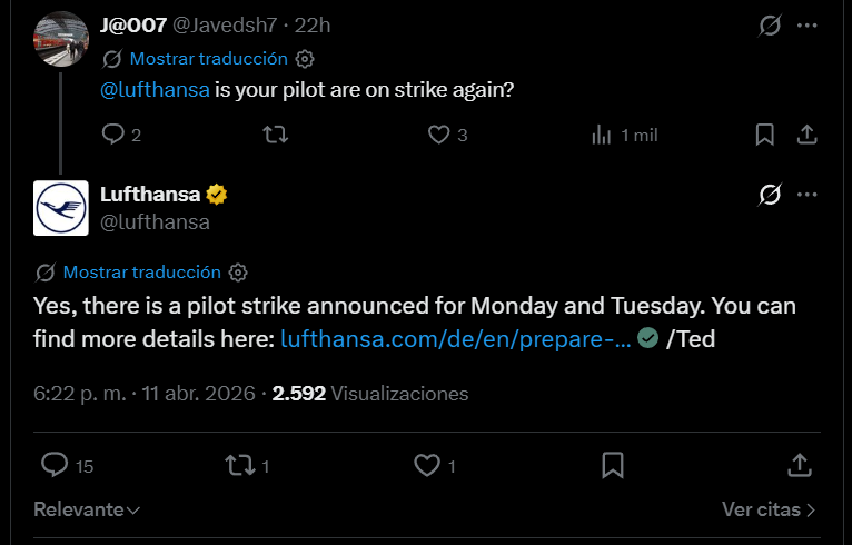 La medida afectará a los pilotos de Lufthansa, Lufthansa Cargo, Lufthansa CityLine y Eurowings en todos los vuelos que despeguen desde Alemania durante ese periodo. Sin embargo, en el caso de algunas rutas de Lufthansa Cargo y Lufthansa CityLine, quedan excluidos los vuelos hacia varios destinos de Medio Oriente.