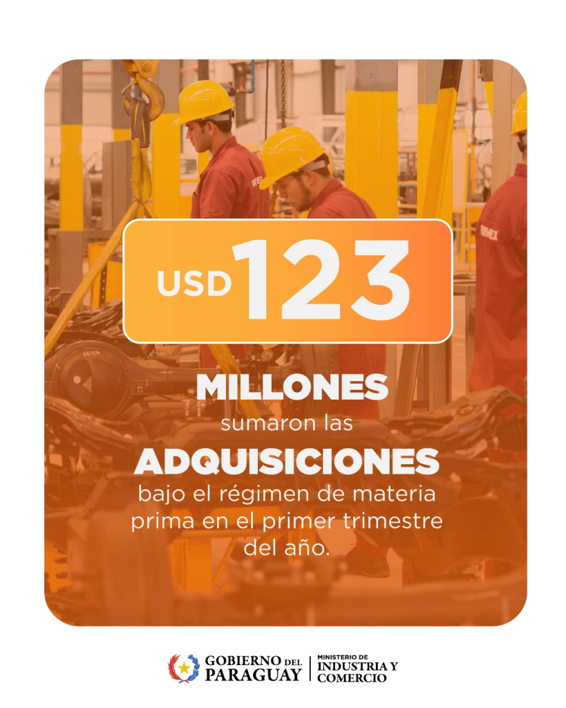 Las importaciones bajo el régimen de Materia Prima alcanzaron USD 123 millones en el primer trimestre de 2026, según datos del Viceministerio de Industria. El 67% de estas compras se concentró en los sectores metalúrgico y químico-farmacéutico, principales demandantes de insumos industriales, según datos del Viceministerio de Industria, dependiente del Ministerio de Industria y Comercio (MIC).